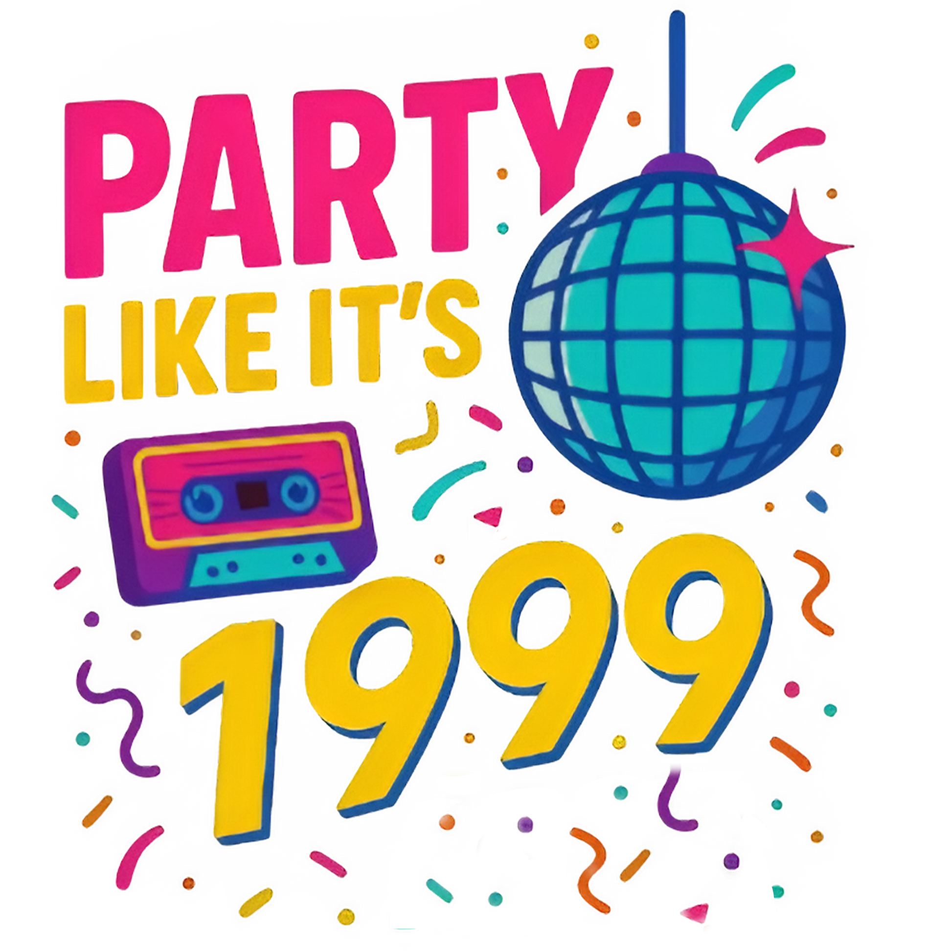 Bring the retro vibe to life with the Party Like It’s 1999 t-shirt. Featuring a disco ball and cassette design, this funny graphic t shirt is printed with premium DTF technology for bold colours and sharp detail.